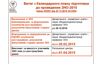 - Сообщаем, что ученики нашей школы 100% (59 учеников) были зарегистрированы для участия в ВНО 2015